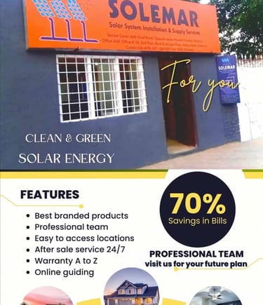 At SOLEMAR, we offer services from installation to bulk procurement of solar energy products (solar panel PV, Inverters, and accessories). Our professional team welcomes you to meet your market, residential, and commercial needs.